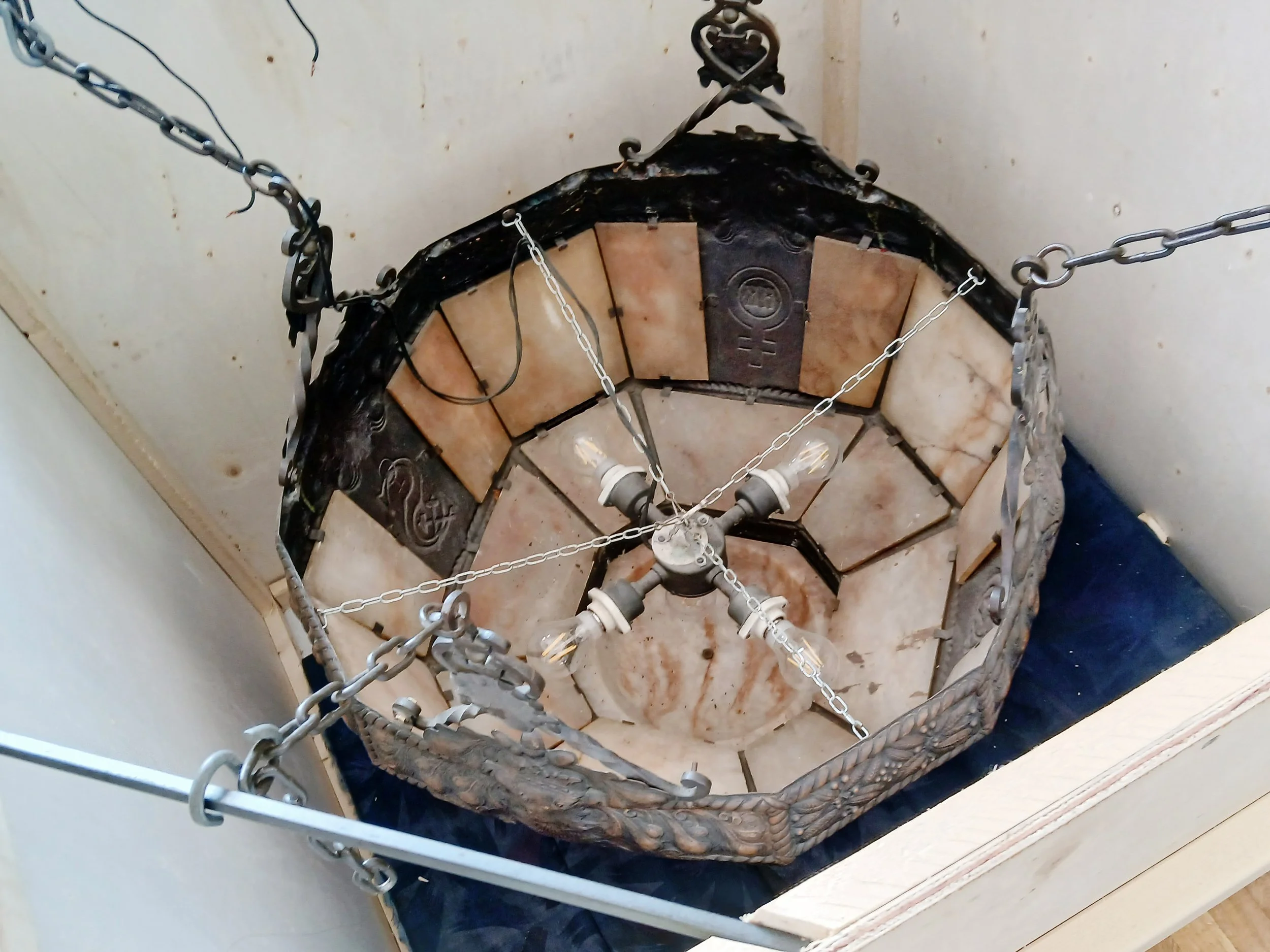 After so many years, the lamp needs professional cleaning and conservation. The copper lamp has faux marble in the side panels, and bears the mark of many years in the smoky atmosphere of the fireplace room. The lamp has now been delivered to the Sulitjelma Mining Museum, where it will be preserved and exhibited in a professionally responsible manner, as was always the intention.