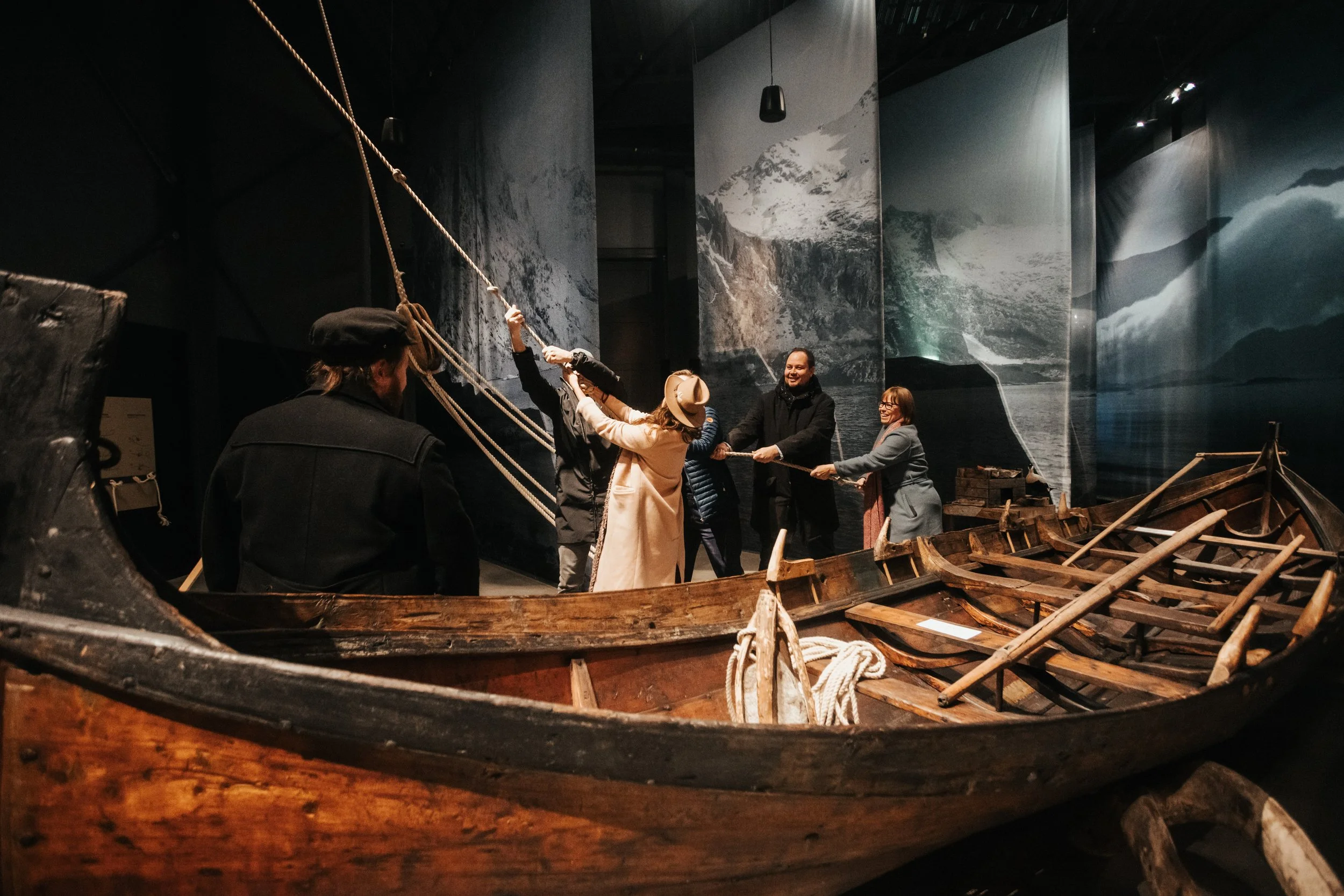 Dere blir guidet gjennom hele utstillingen, og får lære om både tiden før og under jektefarten.