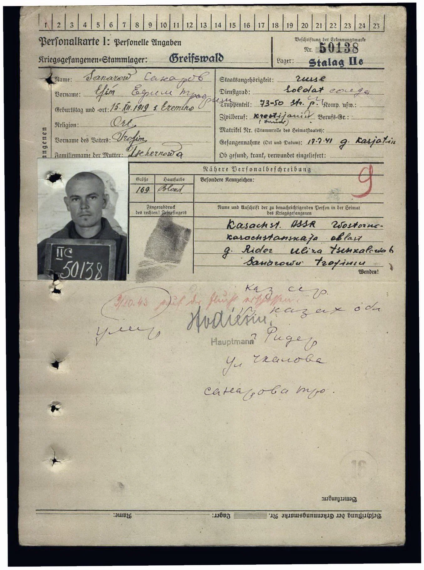 23 år gamle Jefim Sanarov fra Kasakhstan ble skutt 9. oktober 1943. Sammen med Fjodor Trifonov og Nikifor Malasjik rømte han fra fangeleiren. Etter noen dager ble de tatt, ført tilbake og henrettet i steinbruddet i nærheten av leiren.