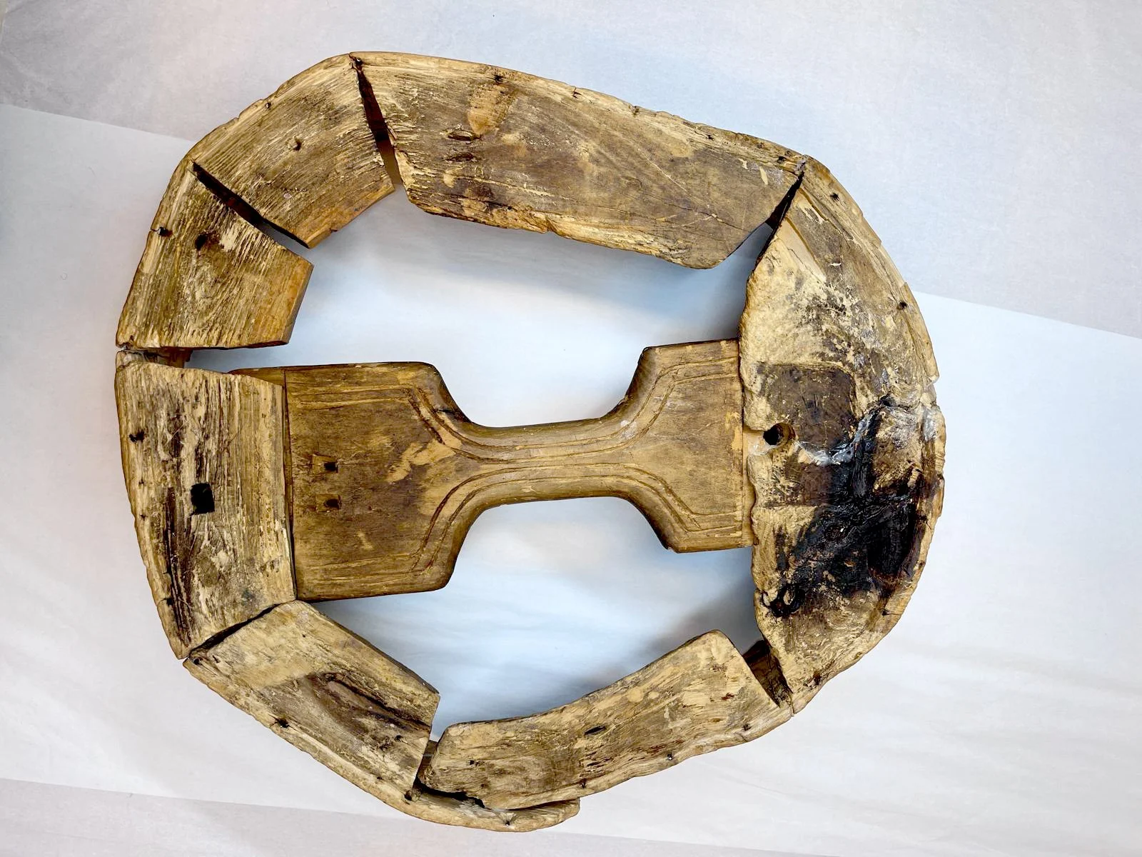Detalj fra konserveringsarbeidet: trerammen til runebommen under rensing utført av vår konservator.